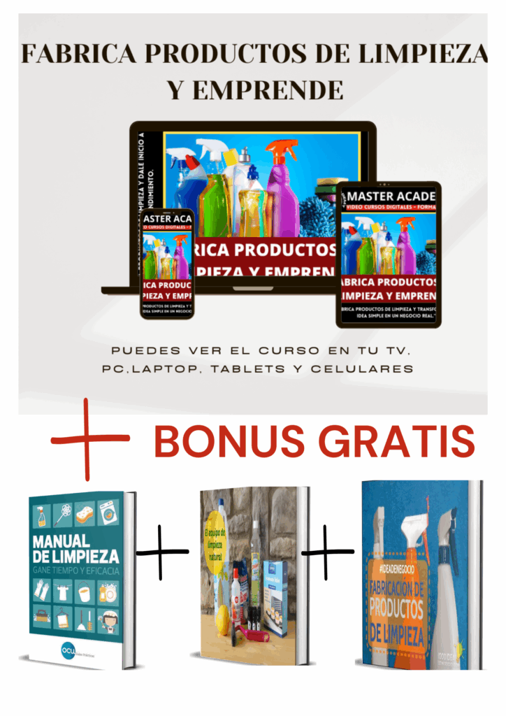 Este curso te enseñará todo lo que necesitas para empezar. Aprenderás fórmulas prácticas y efectivas para crear limpiadores que realmente funcionan y que puedes vender fácilmente.